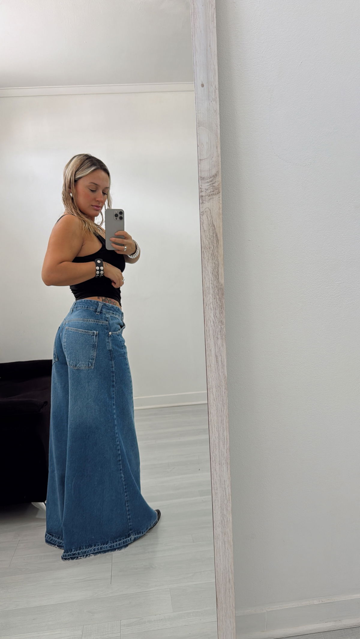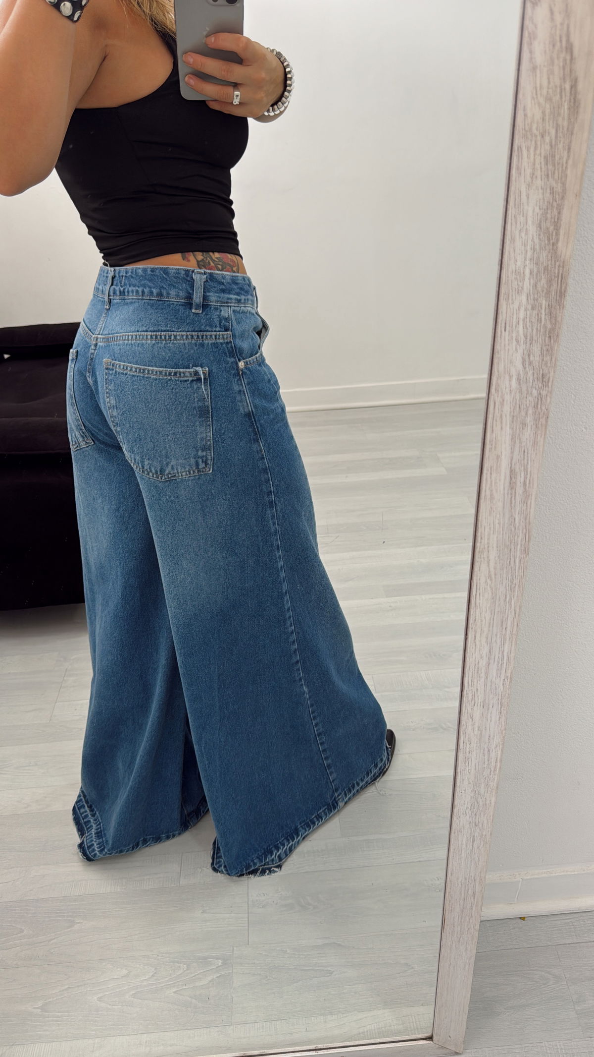 Jean de corte extra wide con tiro medio. Un esencial del guardarropa que se destaca por su comodidad y versatilidad. Está confeccionado en denim de muy buena calidad, con una textura agradable y buena estructura. Es rigido pero mega amplio, lo que brinda libertad de movimiento y un ajuste que acompaña el cuerpo. Tiene bolsillos funcionales y un calce pensado para favorecer la figura. Ideal para usar todos los días y combinar con distintos estilos.